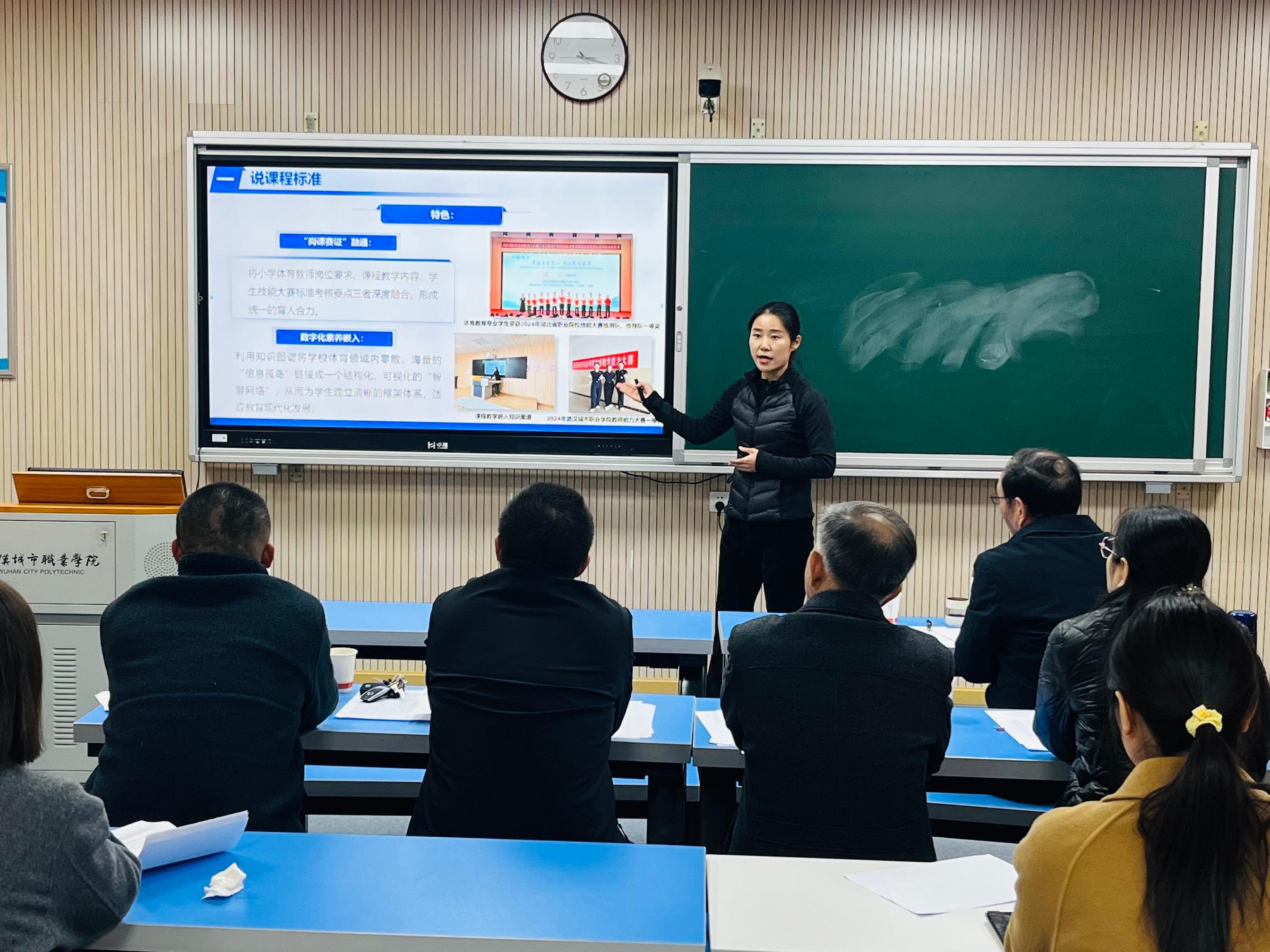 汇报过程中,教师们围绕一门具体课程,系统阐述了课程标准的制定依据与特色、教材与课程资源的建设使用情况、课程目标的设定与达成路径、教学内容的优化与思政融入、教学方法的改革与实施过程、课程评价体系的构建与创新,以及课程建设的成效反思与改进方向。重点突出了教学内容与产业发展的结合、教学实施中的混合式改革与行动导向教学,以及课程评价中过程性与综合性评价的探索。