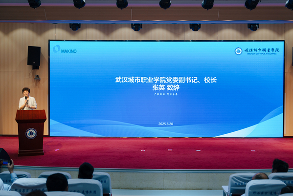 6月20日,“产教赋能 智启未来——牧野产业学院揭牌典礼暨武汉城市职业学院国家级职业教育教师创新团队建设推进会”在学校机电工程学院学术报告厅举行。学校党委副书记、校长张英,牧野机床(中国)有限公司副总裁土屋,华中科技大学专家、湖北省模具工业协会秘书长梁培志等领导、嘉宾出席并致辞。机电工程学院党总支书记陈淑花主持。