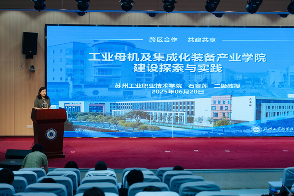 国家级教学名师、苏州工业职业技术学院智能装备学院院长石皋莲教授,以“工业母机及集成化装备产业学院建设探索与实践”为题,分享了工业母机类产业学院建设的宝贵经验。
