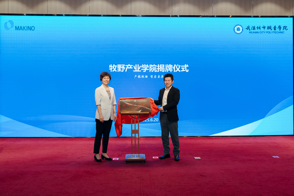 学校校长张英与牧野机床(中国)有限公司副总裁土屋共同为“牧野产业学院”揭牌