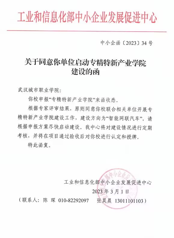 近日,工业和信息化部中小企业发展促进中心公布首批“专精特新产业学院”启动建设名单,我校名列其中,建设方向为“智能网联汽车”。此次“专精特新产业学院”获批建设,标志着我校产教融合提档升级又迈出了突破性的一步。